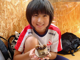 当ふれあいセンターは3~4年生を対象に木の実や小枝を使ったクラフト作りをサポートしました。最初はイメージが浮かぶまで少し時間がかかりましたが、「何を乗っけよう?」「くっつけるのは難しい!」など材料と道具と想像力を駆使しながら、動物や昆虫、車などいろいろなものを作りあげていました。