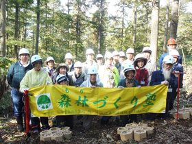 春に「第1回森林づくり塾」で塾生が作り育てたポット苗を組み立てたカミネッコンに移植し、植栽場所を地均して植付する作業をひととおり終えると、効率を考えカミネッコンを組み立てる人、移植する人、地均しして植付する人と別れて作業するなど、それぞれ一生懸命に作業していました。