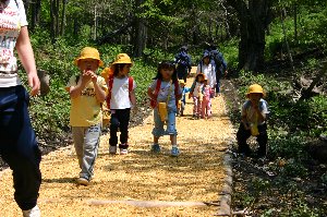 (遊歩道へ向かう園児たち)