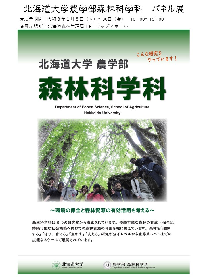 1月8日(木曜日)~30日(金曜日)まで、北海道大学連携協定パネル展を実施します。是非お越しください。