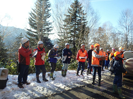 このため、森林作業道の作設技術や列状間伐に関する現地検討会を開催し技術水準の向上を図っています。
