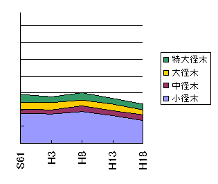 ホーム > 森林管理局の案内 > 森林管理局の概要 > 管内各センターのご紹介 > 知床森林生態系保全センター > 択伐跡地の推移 > 結果と考察(その1) > 径級別の本数・材積推移