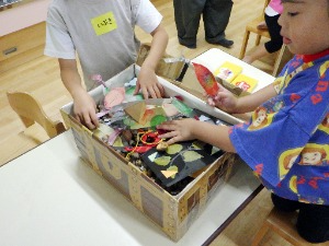 後半は、用意した様々な木々の葉っぱを使って、「葉っぱの写し絵」に挑戦です。
