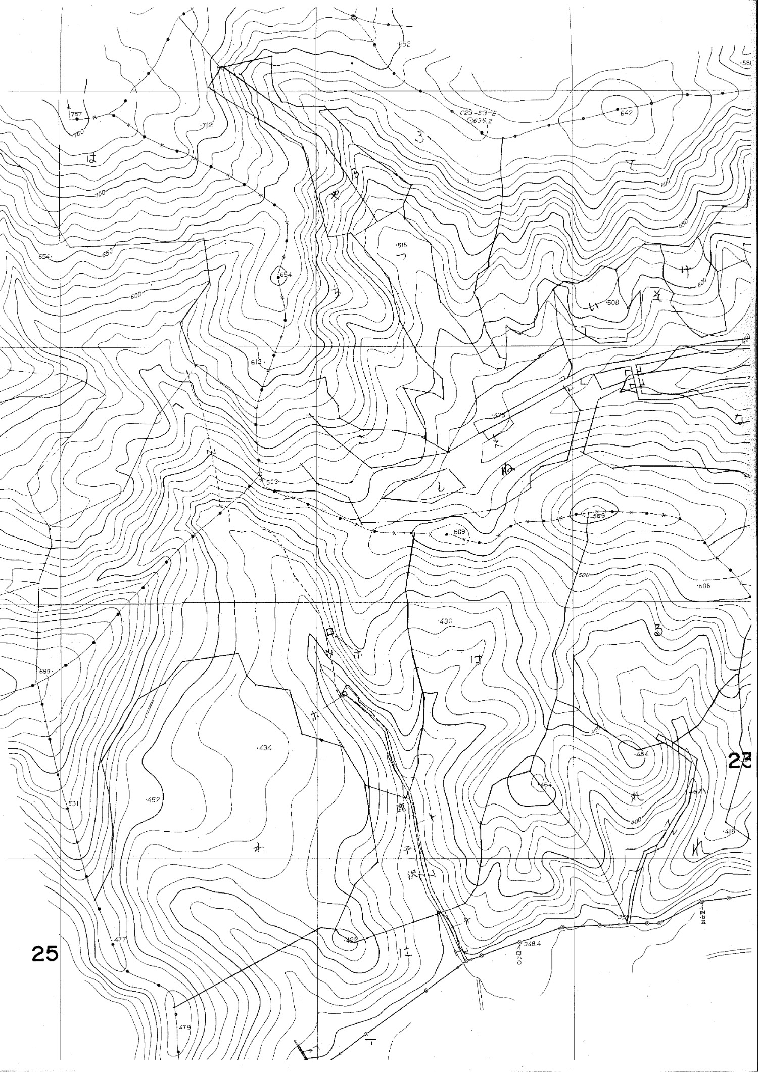 鹿の子沢周辺の国有林図面(基本図5千分の1)(クリックすると、大きい画像が立ち上がります。)