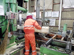 広葉樹工場内の耳付材