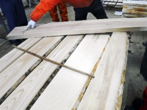 一次加工し、人工乾燥させた針葉樹の製材を、カンナがけして仕上げます。