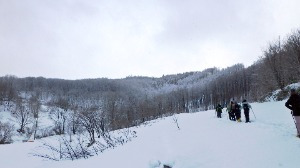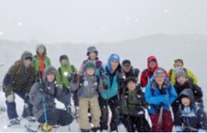 目指した小山は標高400m程度でしたが、吹雪の中でも山頂では360度遮るものがない景色が広がり、参加者全員が登頂の達成感を味わいました。