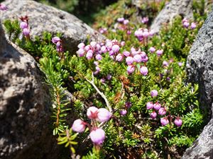 高山のれき地やハイマツ帯に生える常緑低木で、花は淡いクリーム色でたまに赤みを帯びます。