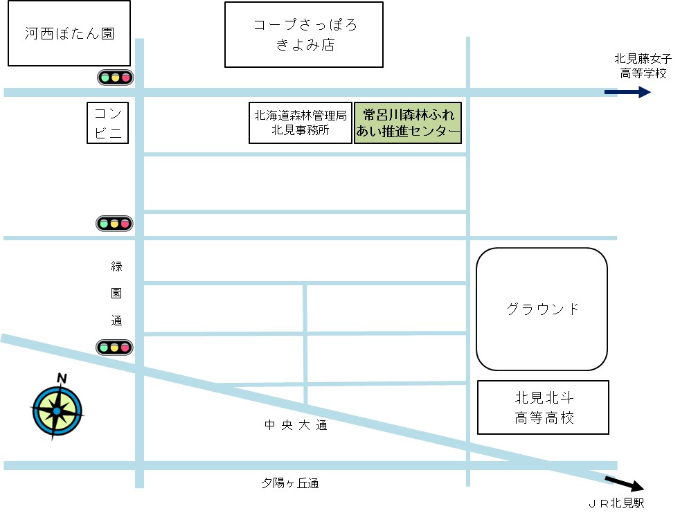 国道39号をJR北見駅前で右折し直進。NHK北見放送局手前を右折し、北見北斗高校右横を進み、コープさっぽろ「きよみ店」の向かい。