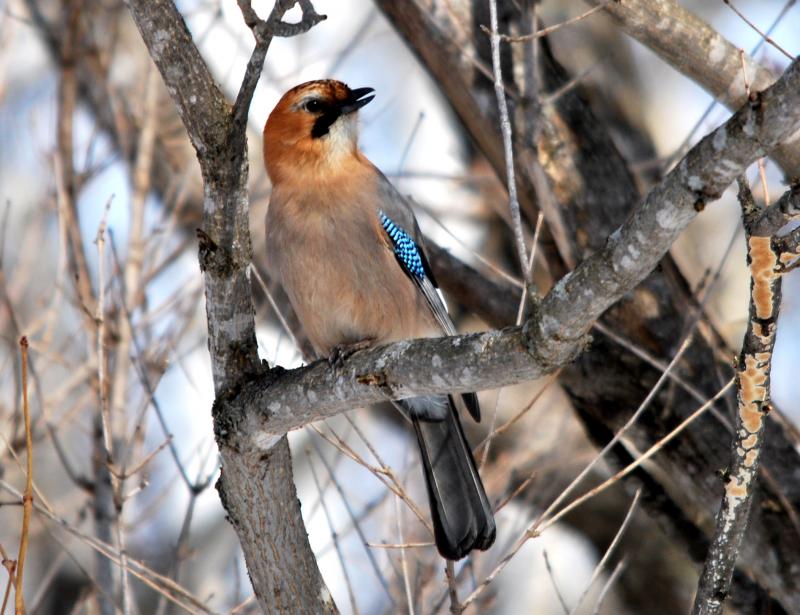 | ミヤマカケス 羽の青い部分が綺麗ですが、鳴声は「ギャー」とか 時には猫の鳴声をまねたりするそうです。 ![]() |