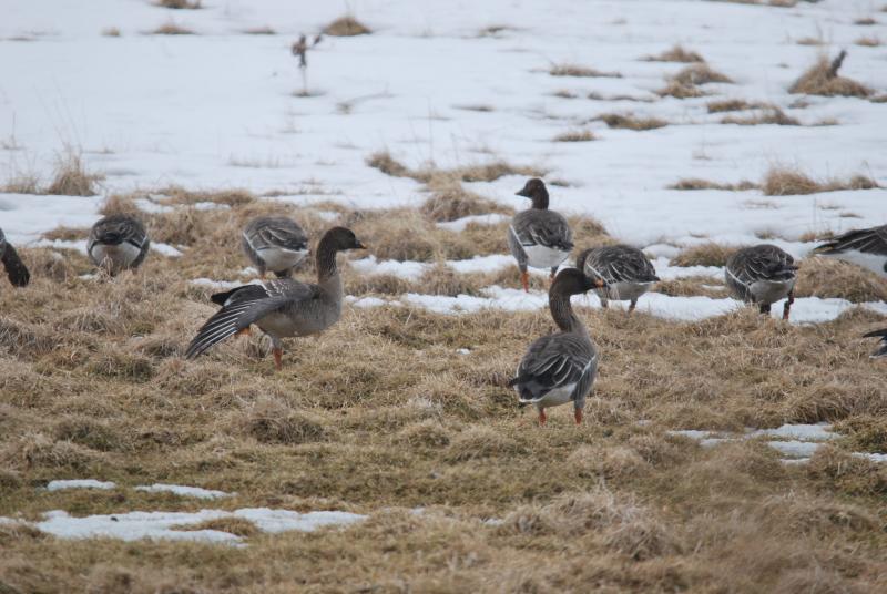 | オオヒシクイ 旅の途中でしょうか、群れで餌をついばんでいました。 ![]() |