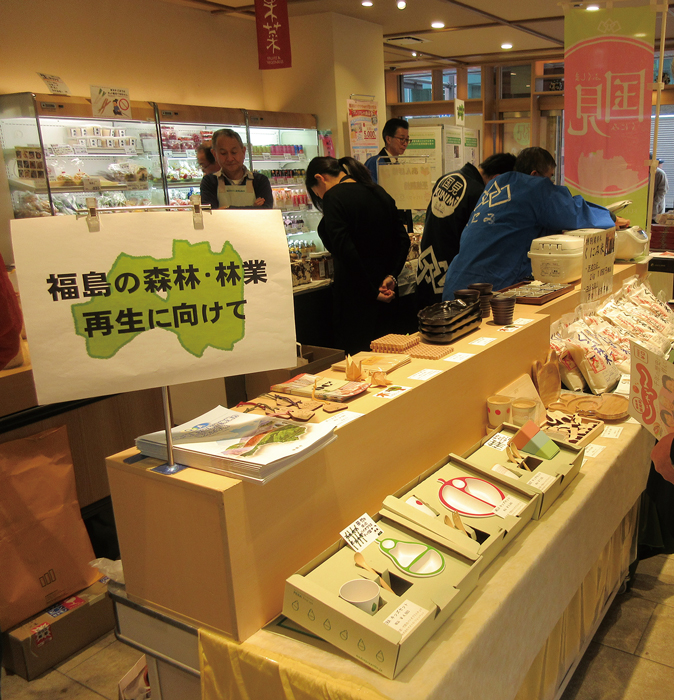 平成29(2017)年12月、農林水産省「消費者の部屋」(東京都千代田区)及び「日本橋ふくしま館MIDETTE(ミデッテ)」(東京都中央区)において、福島県産の木材・木製品・林産物等を紹介する展示を開催。木製品、きのこ加工品の展示や、福島県内で林業・木材産業等の分野で活躍している人を紹介する映像の上映等を実施。