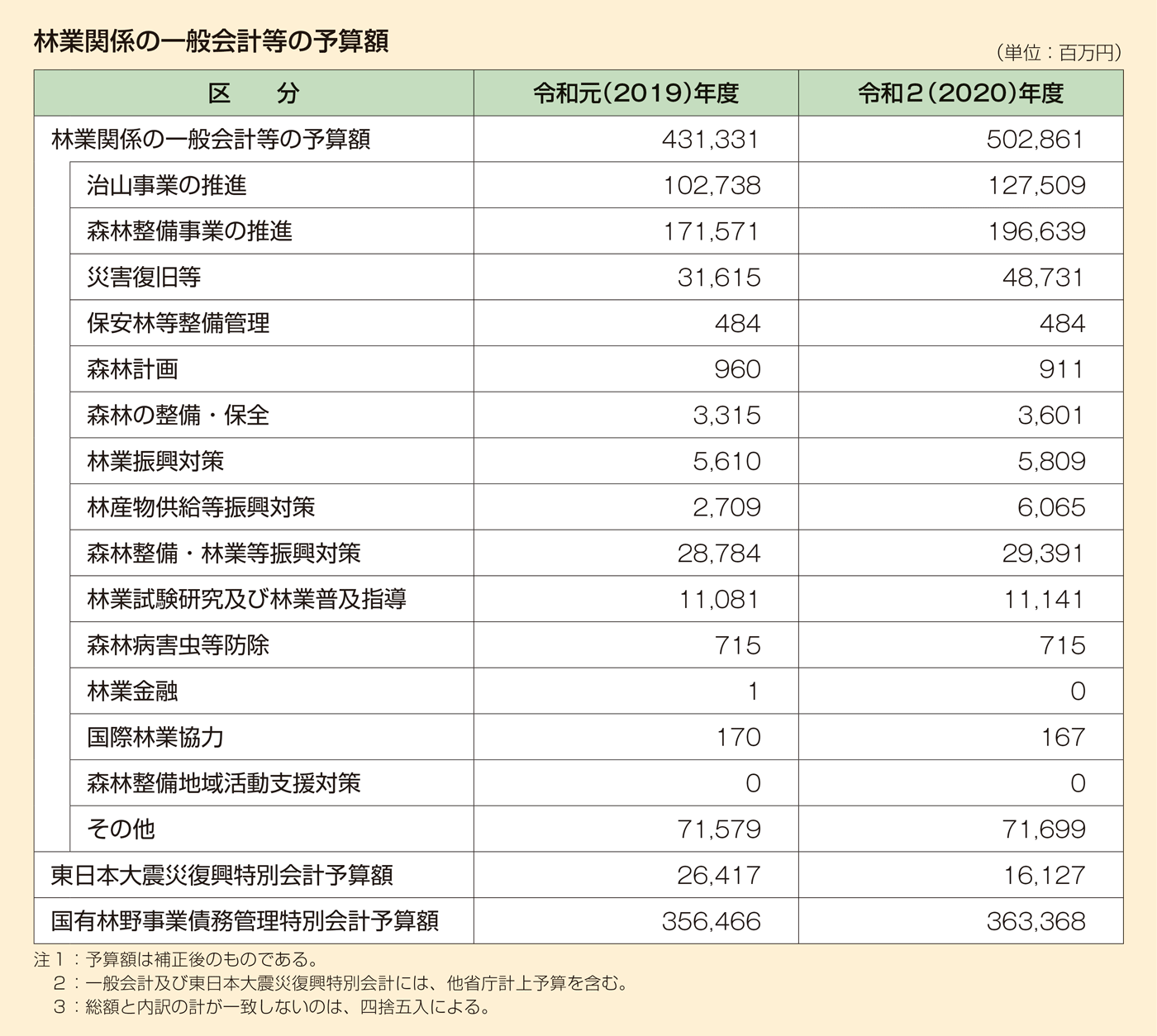 さらに、新型コロナウイルス感染症対策として、令和2(2020)年度林野庁関係第1次・第2次補正予算等においては、