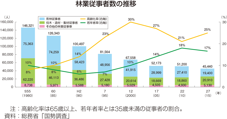 【林業従事者の現状】