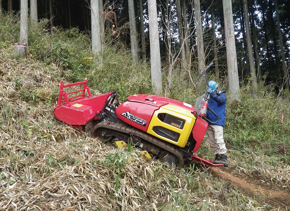➢ 30°の傾斜地でも地拵え、下刈り等が可能な乗用の造林作業機が開発・製品化され、遠隔操作化も進行