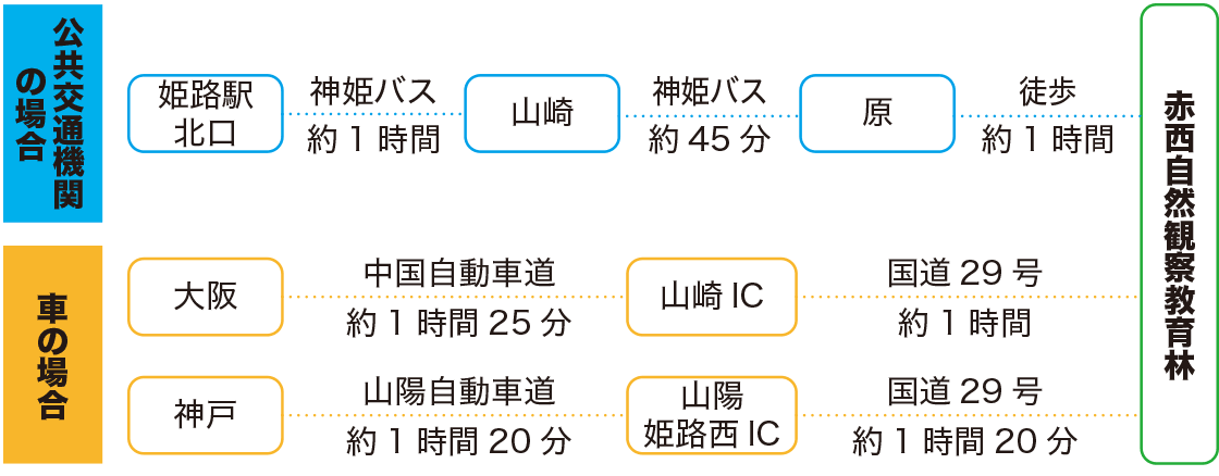 - 赤西自然観察教育林は、標高が高く冷涼な気候であり、冬季には積雪も見られます。植生はスギ、ヒノキ、ツガ等の針葉樹のほか、ミズナラ、ケヤキ、カエデ、ブナ等の樹齢150年を超える天然広葉樹も多く見られます。
