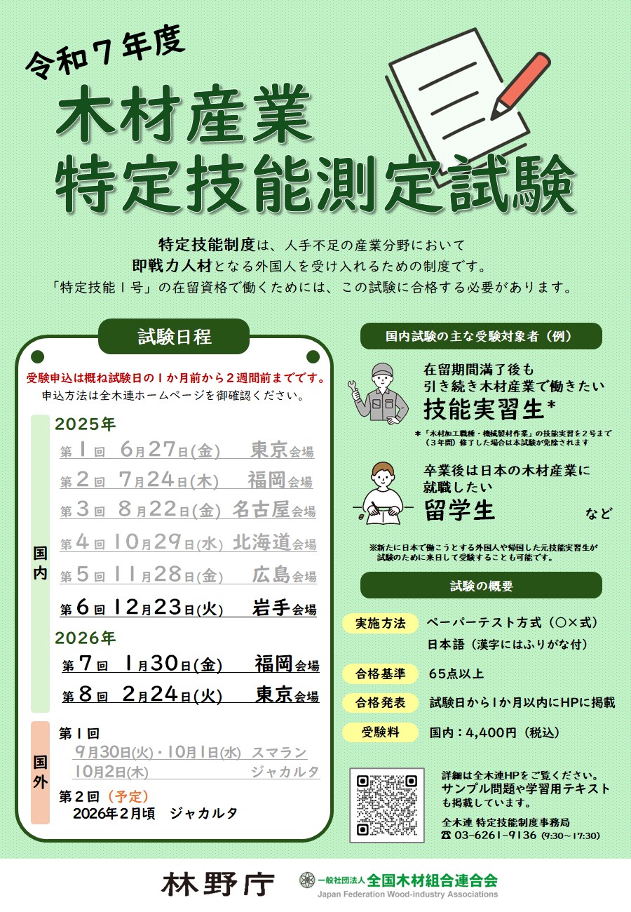 - 令和7年度木材産業特定技能測定試験(リーフレット)(2025年10月)(PDF : 725KB)