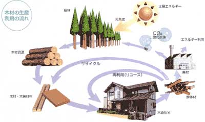 木質バイオマスのうち、製材工場の残材や住宅解体材などは、利用されなければ廃棄物となります。しかし、これらがバイオマスエネルギーとして有効に活用されれば、廃棄物を減らし、循環型社会の形成に役立つことになります。