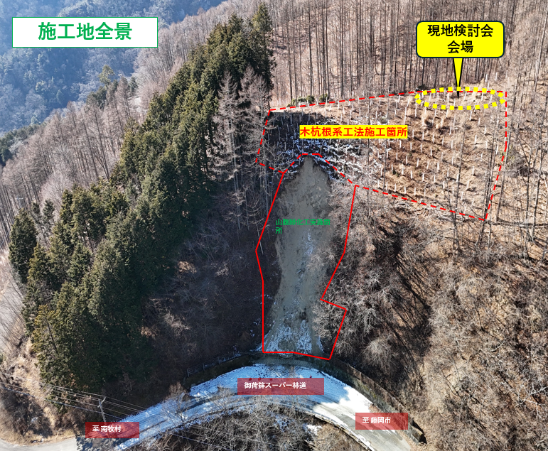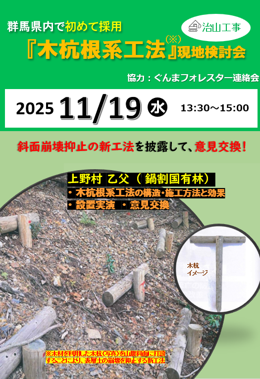 ”国有林治山・林道工事意見交換会(選ばれる森林土木)とのコラボ企画”『木杭根系工法』治山現地検討会を開催しました!