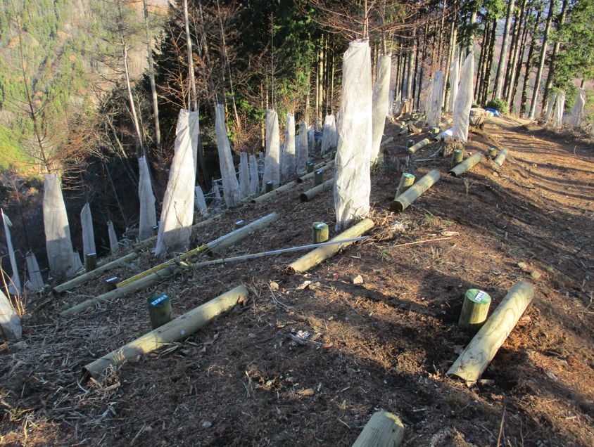 比較的安価に木材を使用する簡易な工法であることから、造林地にも施工でき、省人化が図られ、生態系にも配慮した木材利用の推進に繋がる治山対策として注目されています。