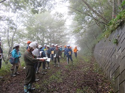 治山事業施工地と新たな崩壊箇所の視察治山事業施工地の復旧状況の視察 意見交換会