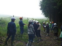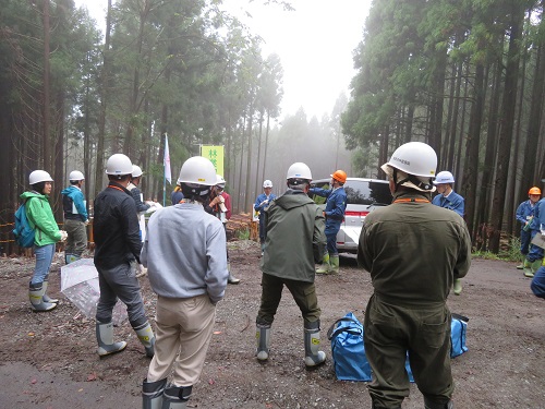 間伐による森林整備の概要説明 高性能林業機械の視察 シカ対策(侵入防止柵)の視察