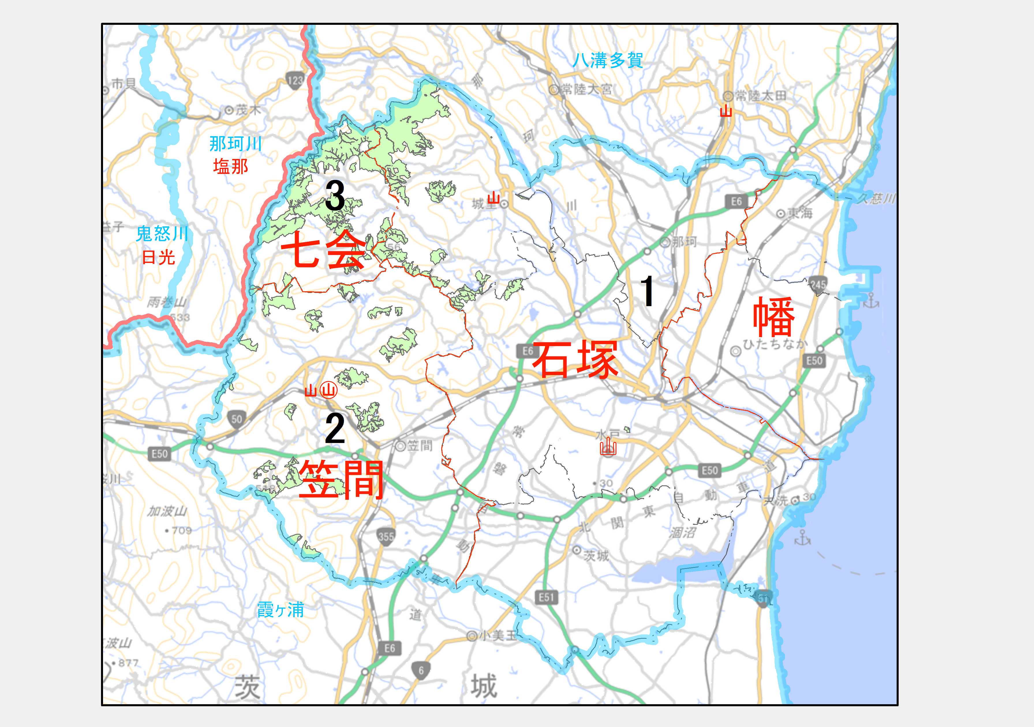 【茨城県】 東海村、水戸市、城里町、笠間市 |