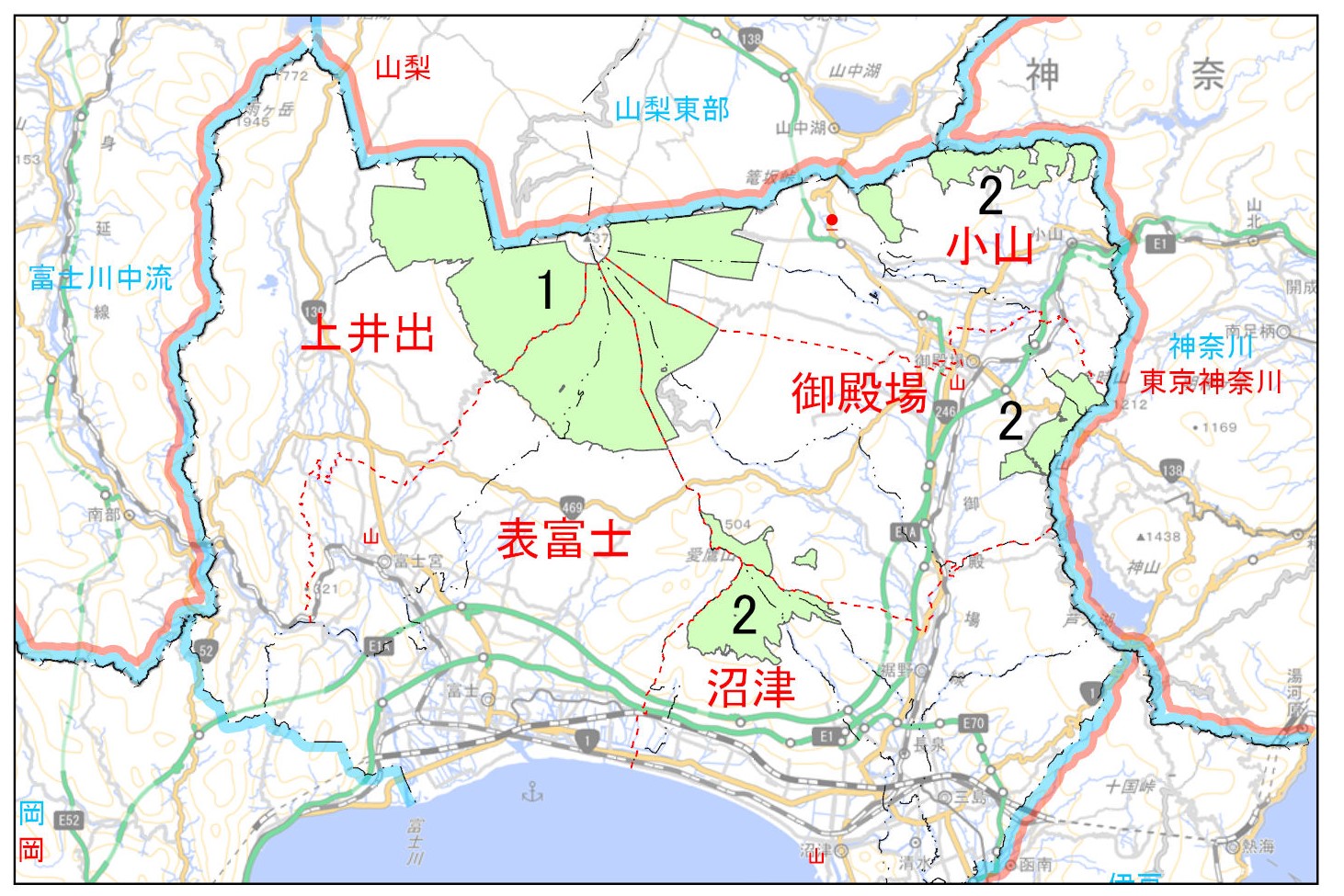【静岡県】 富士宮市、富士市、沼津市、裾野市、長泉町、御殿場市、小山町 |