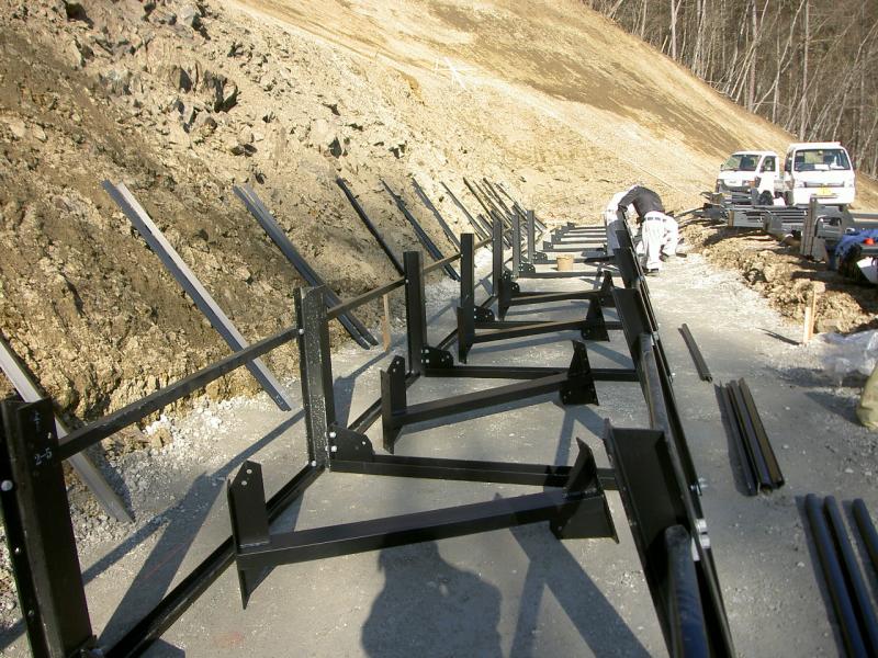 - 土留工の中でも、背面に湧水等が多い箇所や、地すべり地等で多く設置している鋼材を使用した枠タイプの土留工を紹介します。