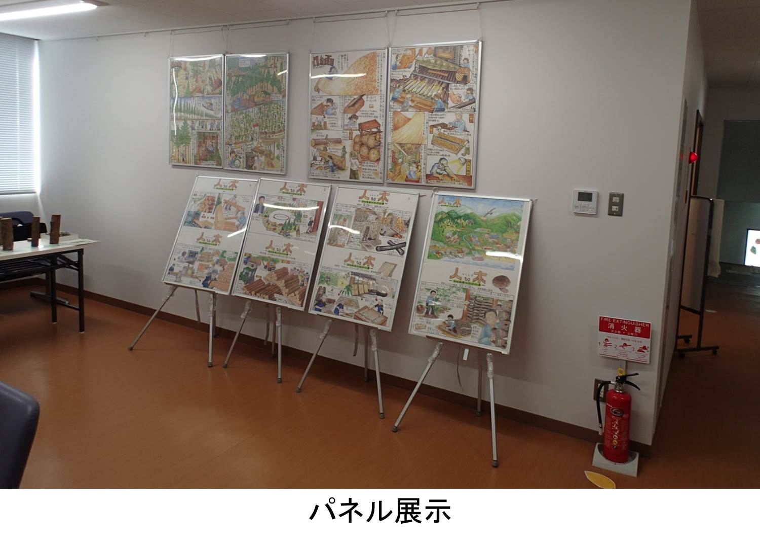 平成30年11月18日、新見市立新見公民館にて、にいみ木のおもちゃの会主催のイベント、『森のゆうえんち in にいみ~森の宝物を探しにいこう!~』に参加しました。このイベントは、木や森について楽しみながら興味を深めてもらおうと、さまざまな木にまつわるブースが集まる、子供も大人も楽しめるイベントです。今年で2回目、昨年に引き続きの参加です。森林技術・支援センターは、人と木のかかわり方が子供にもわかりやすく描かれている林業漫画をパネルにして展示し、『木の名前あてクイズ』、『木工クラフト』のブースを設けました。木工クラフトでは好きな材料を使って自由に製作してもらいました。木の実、枝、板などを使いオリジナルの作品を家族や友達と楽しそうに作っていました。