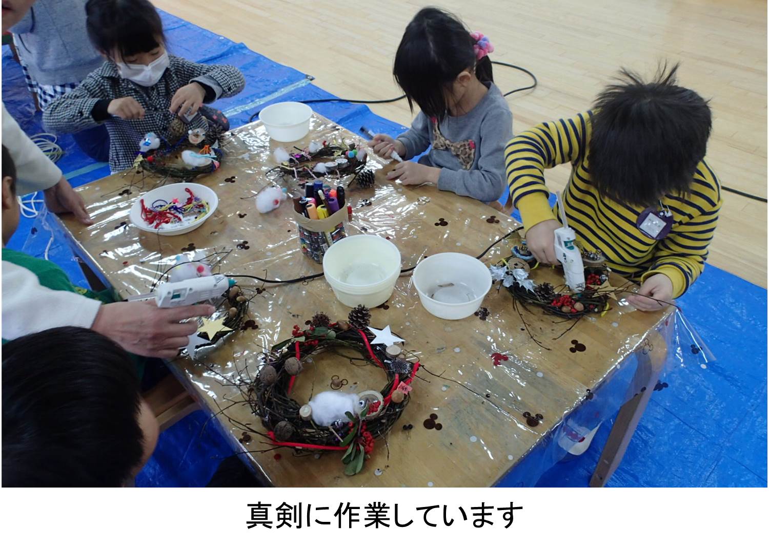 作ったリースは後日開かれるクリスマス会で飾るそうです。