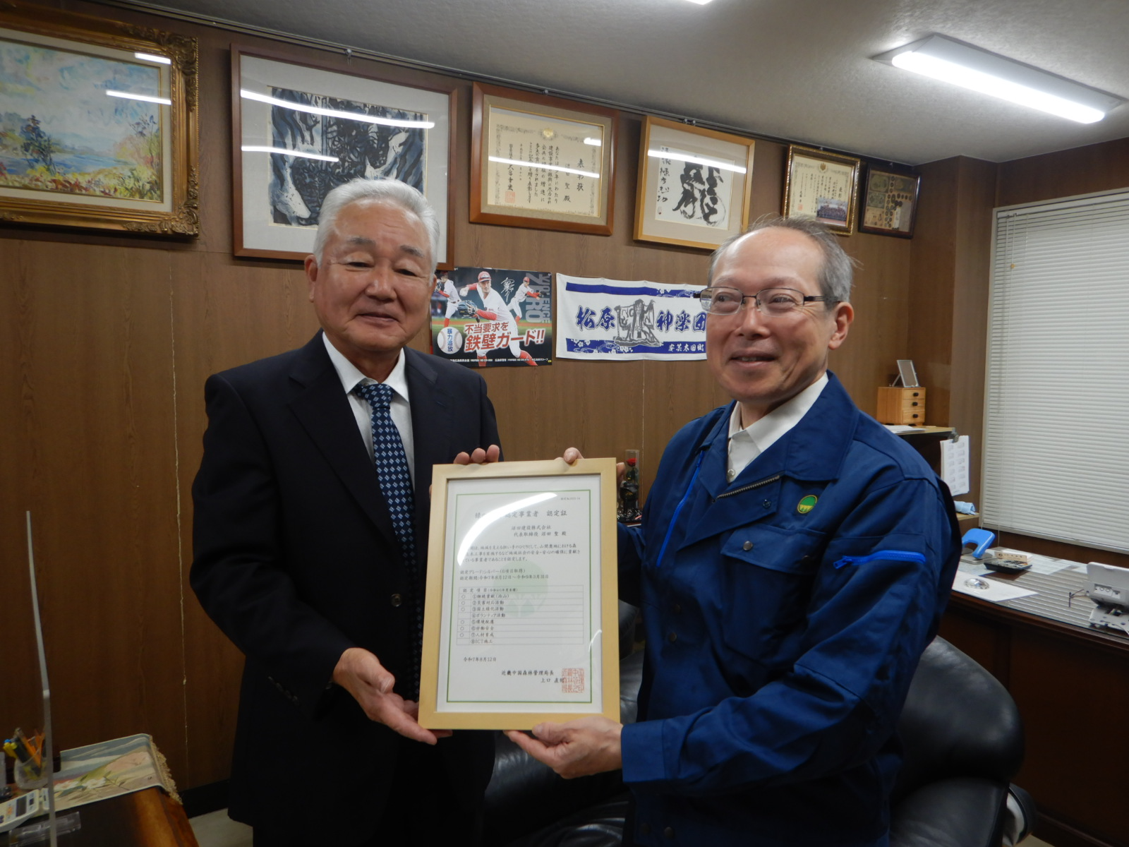 【認定証を授与 沼田建設株式会社 代表取締役 沼田 聖氏】