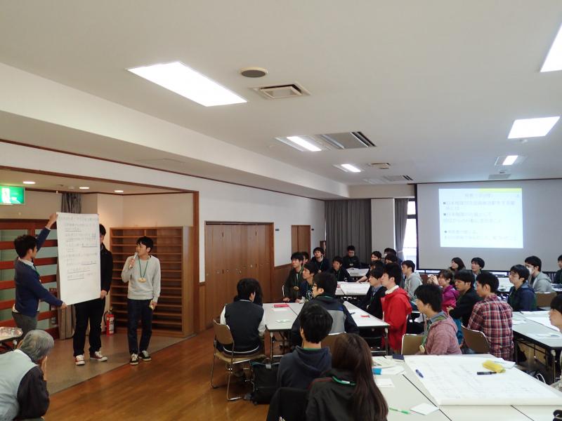 続いて場所を室内に移動し、研修生が各班に別れて「日本触媒が社会貢献活動をする意味とは」、「日本触媒の社員として明日からの行動に生かすこと」のテーマについてグループ討議をするワークショップを行いました。