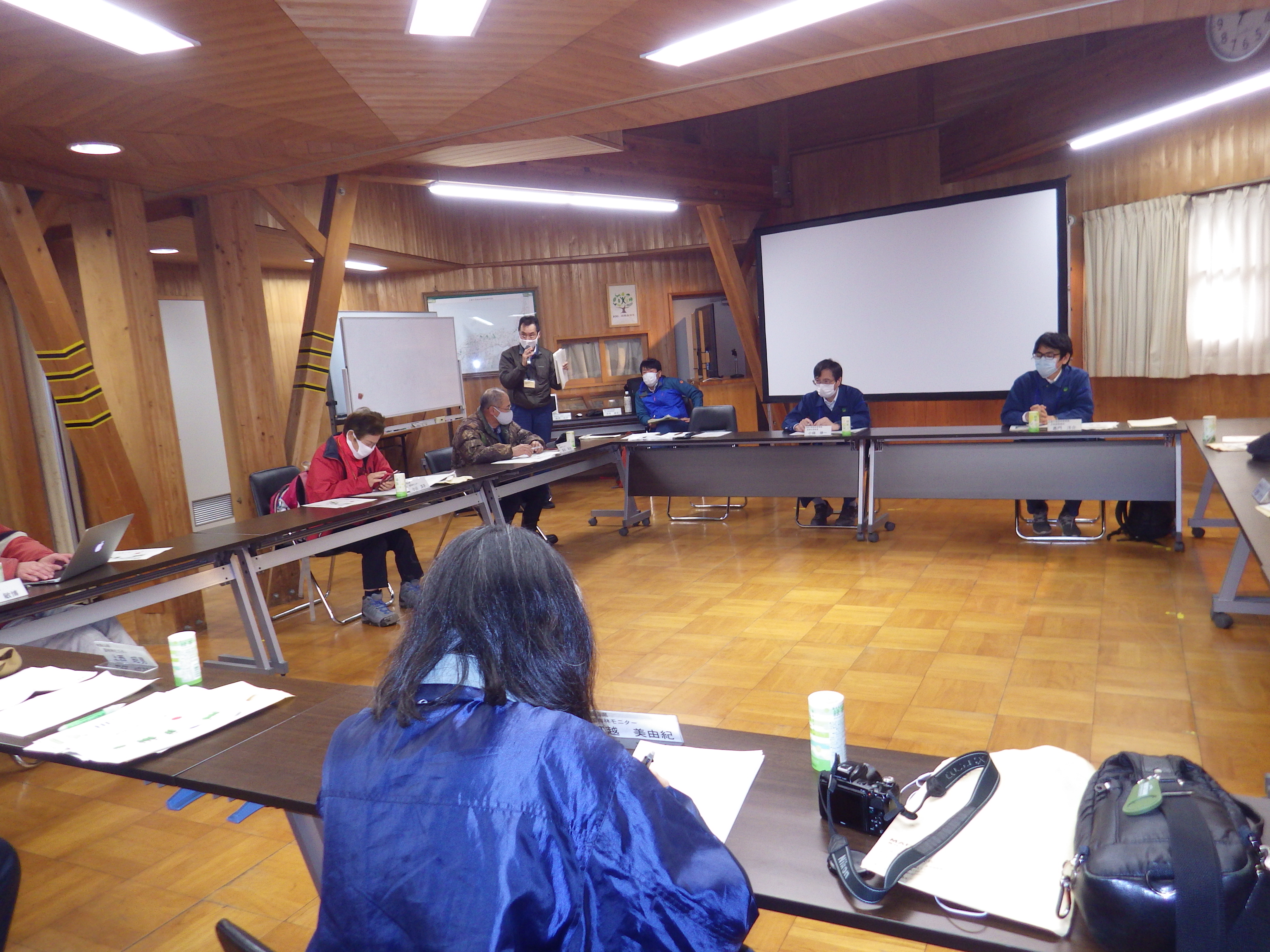 菅ヶ峠国有林での見学の後、新見市に所在する森林技術・支援センター会議室において意見交換会を開催しました。山林を所有するモニターの方からは、ご自身が所有する山林での地上レーザースキャナによる森林計測を希望するご要望や生産事業実施箇所で説明のあった皆伐と漸伐の違いについてのご質問等たくさんのご意見をいただきました。