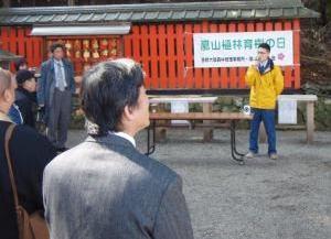 意見交換会に続いて、嵐山国有林内において、植樹行事「第29回嵐山植林育樹の日」を開催しました。この「嵐山植林育樹の日」は、昭和57年から毎年2月25日に嵐山保勝会との共催により開催している植樹行事で、今回で29回目となります。