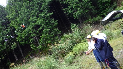 いなべ市にある悟入谷国有林では、ドローンを使用した上空からの林況調査、シカによる造林木の食害を防止するための防護柵の点検・修理の体験をしてもらいました。