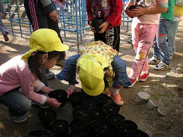 園庭の隅に運んで・・・ |
