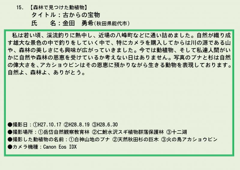 | 審査員特別賞 | 森林で見つけた 動植物 |
