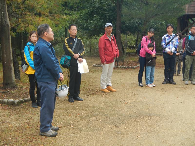 朝からの雨も上がり始めた午前中の活動として、参加者のうち20名によるクヌギ苗の補植作業と、残りの20名による大阪府による記念の森内の樹木の保護ネットの設置(ニホンジカによる剥皮被害の防止)に汗を流しました。雨で滑りやすくなった林内での植樹は、予定していた一人当たり4本の植付もどんどん進んで「もっと植えたかった」と参加者からの声も聞こえました。