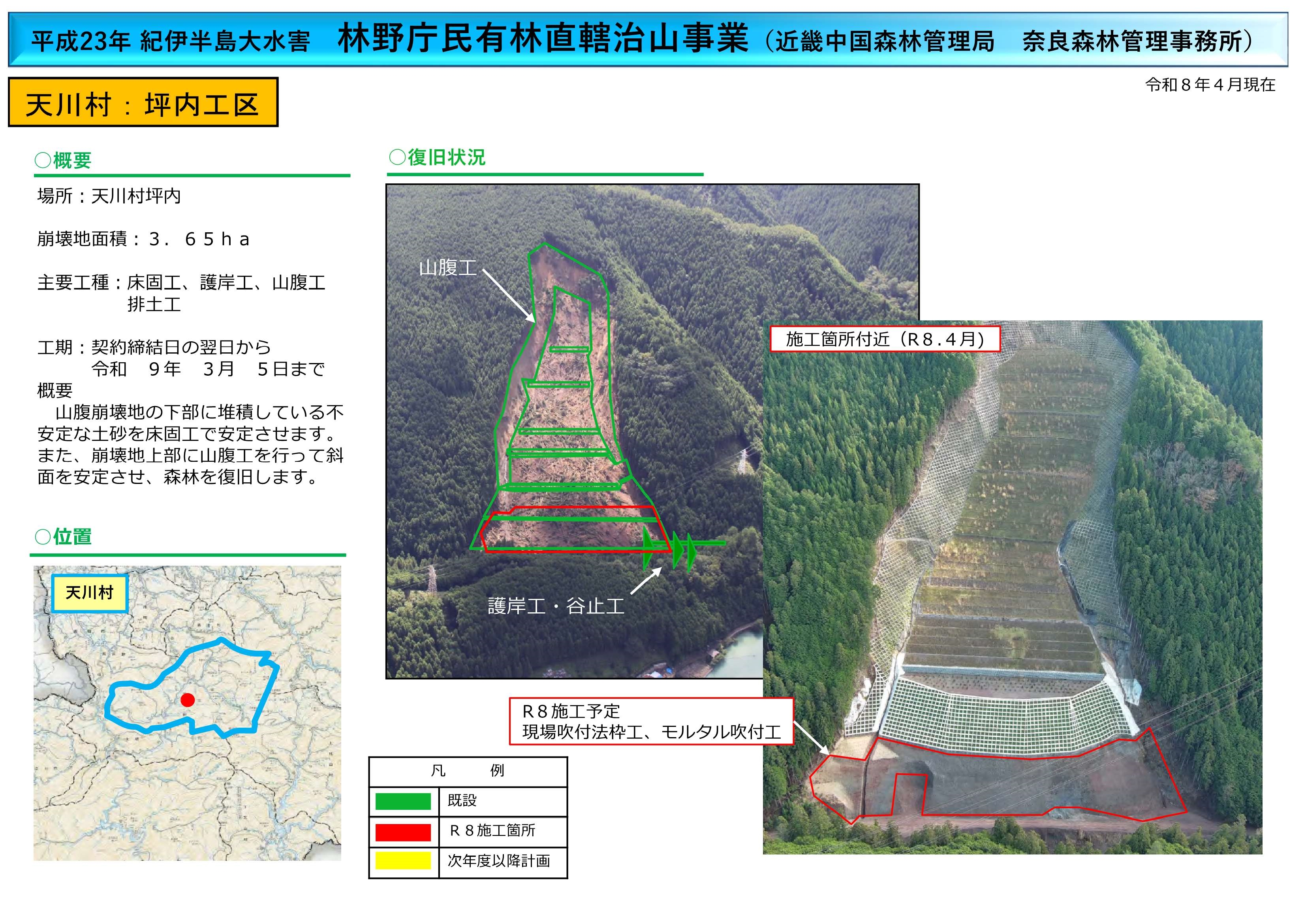 現在は奈良県からの要請により、昭和42年以降近畿中国森林管理局直轄治山事業として当所が施工主体となり事業を行っています。