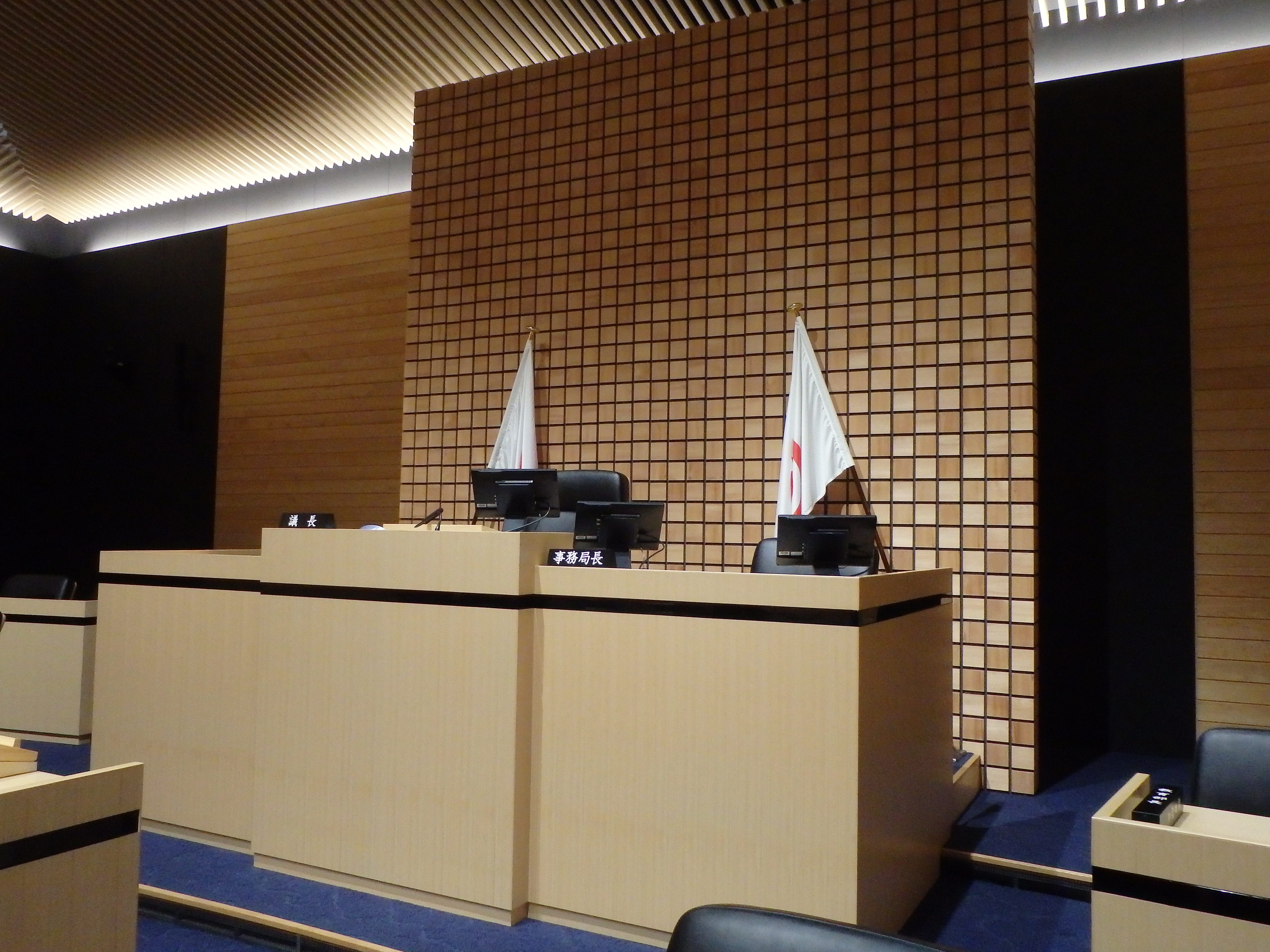 | 山口市本庁舎:議場(衝立) | 山口市本庁舎:6F市民ロビー |