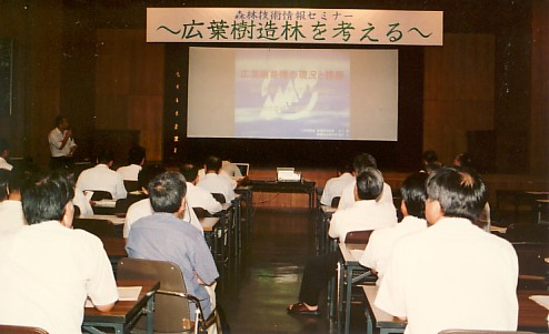 セミナーでは、林木育種センター九州育種場から「広葉樹育種の現況と課題」について、森林総合研究所九州支所から「広葉樹造林における問題」と「広葉樹林における害虫問題」の2テーマについて、当局の森林技術センターから「広葉樹造林に関する技術開発経過」について、各機関の専門官がそれぞれの立場から問題を提起しました。