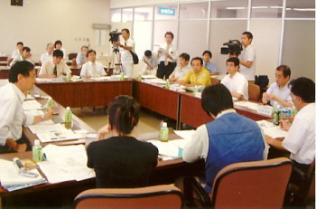 宮崎県綾町役場において7月1日、当局、森林技術センター、学識経験者、(財)日本自然保護協会、(社)日本森林技術協会、宮崎大学、環境省、てるはの森の会のメンバー14人が参加し、1回目の検討委員会を開きました。