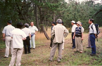 青森県農林水産部、同県森林組合連合会の職員16人が、松くい虫防除先進地である虹の松原国有林を視察しました。同県ではこれまで松くい虫被害の発生はないものの、隣接する秋田県などの被害状況などから危機感を感じ、その対策を検討するため視察に訪れたもの。一行は「虹の松原」一帯を見下ろす鏡山で、当署長から同松原の概要や松くい虫の被害・防除の状況などの説明を受けた後、同松原に移動し、森林総合研究所九州支所長から松くい虫の生態などについて学び、熱心に質問するなど充実した視察となったようです。