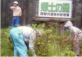 宮崎県木城町石河内の「郷土の森」において、ボランティアら約40人が参加し、下草刈りやツツジの植樹などを行いました。これは、「郷土の森」を憩いの場・癒しの場にしようと、当署と地元石河内自治公民館、木城町、高鍋造林素材生産事業協同組合が保全協議会を発足させ、「郷土の森」の整備に取り組むこととしたもので、今回が1回目。同公民館長で、今回発足した「郷土の森保全協議会」会長の神田直人さんは、「今後は公民館の事業として整備を進め、散策や景色を楽しみ、自然を満喫できる憩いの場にしたい」と述べていました。