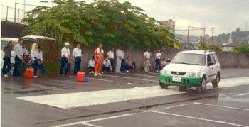 安全週間の準備期間中、JAFから講師を招き、安全運転の講習会を実施。午前中は、点検を怠った場合の事故事例や事故に遭遇したときの対処方法などを学びました。午後は駐車場でスリップマットを使って、ABS装備車と未装備車の急ブレーキを掛けた時のスリップの違いなどを体験し、スピードが出ている時の急ブレーキの危険性を再認識しました。