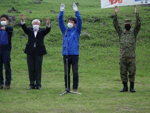 最後に本式典に来賓として参加した当署長が、登山者の安全等を祈念し万歳三唱を行いました。