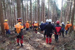 参加者は管内で木材生産事業と治山事業を現在実施している事業体等8社並びに日田労働基準監督署から参加頂き、約40名での開催となりました。