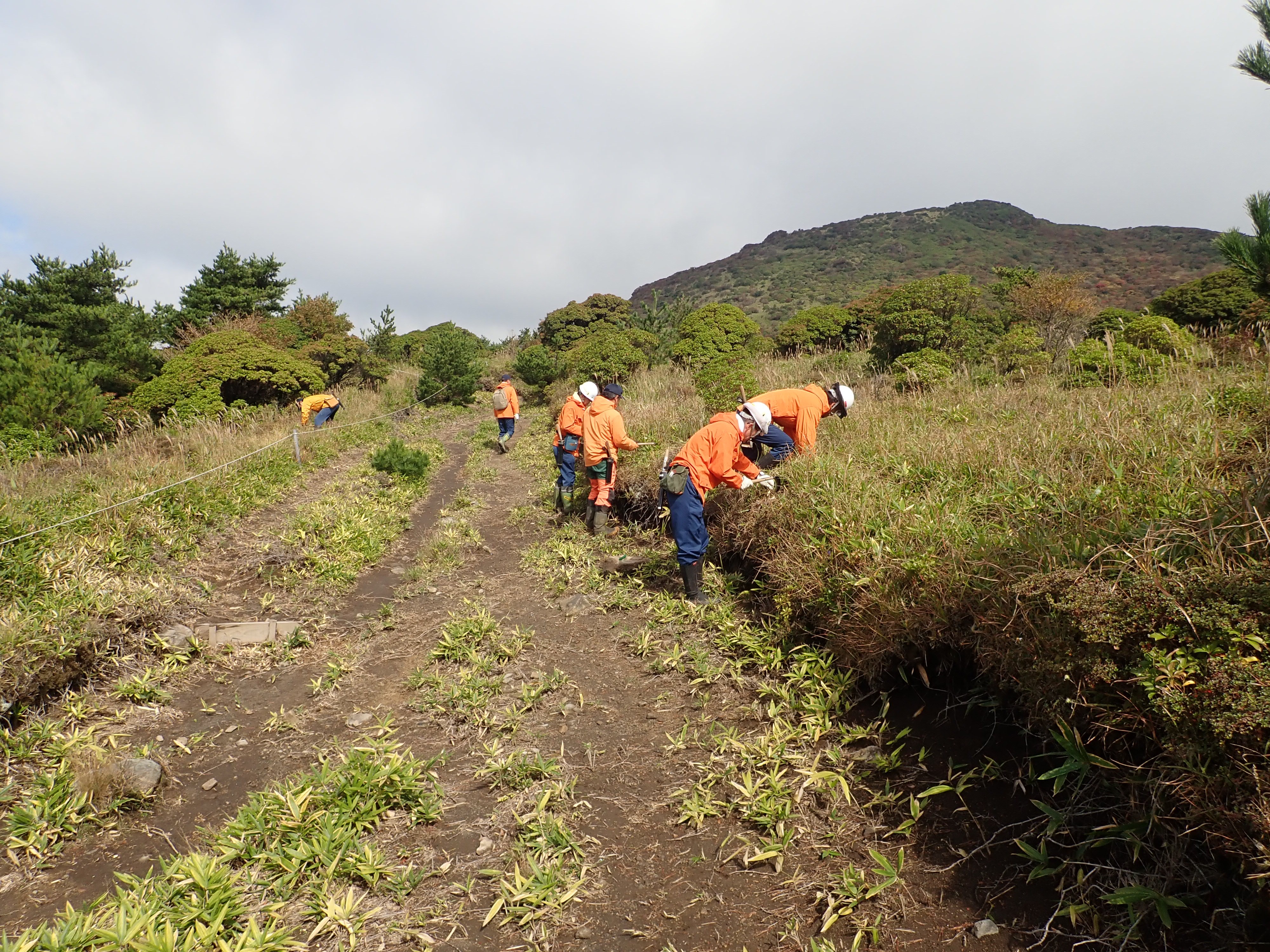当署では毎年、ミヤマキリシマの生息環境を改善するための刈り出し作業と、くじゅう連山におけるクリーン活動を実施しています。