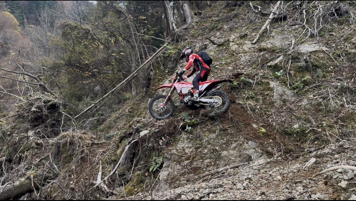| 九州森林管理局は、山地災害等により発生した林地荒廃、林道施設の損壊等により車両等が通行できない道路(林道を含む)や悪路を走行できる特殊走行技能者(トライアル国際A級ライセンス等の資格保有者)をようするNPO法人防災レジリエンス二輪協会と「山地災害発生時における自動二輪車等を用いた被災状況調査等の実施に関する協定」の締結式を11月17日(月曜日)に行い、翌18日(火曜日)に、熊本森林管理署管内の国有林において調査走行を実施しました。 |